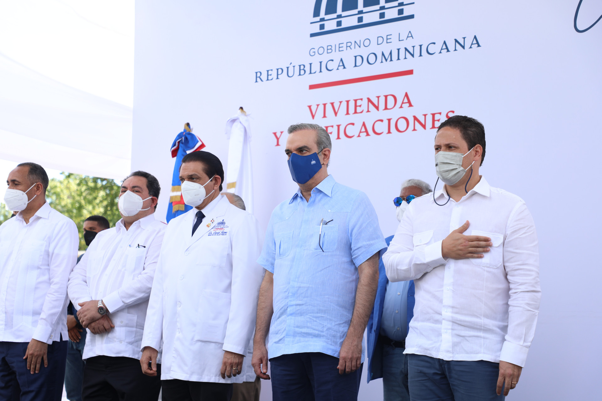 Acompañaron al presidente Luis Abinader, el ministro de la Presidencia, Lisandro Macarrulla, y el de Salud, Daniel Rivera; el director del Servicio Nacional de Salud, Mario Lama; el senador de la provincia San Pedro de Macorís, Franklin Peña, y Nelson Arroyo, presidente del consejo directivo del INDOTEL.