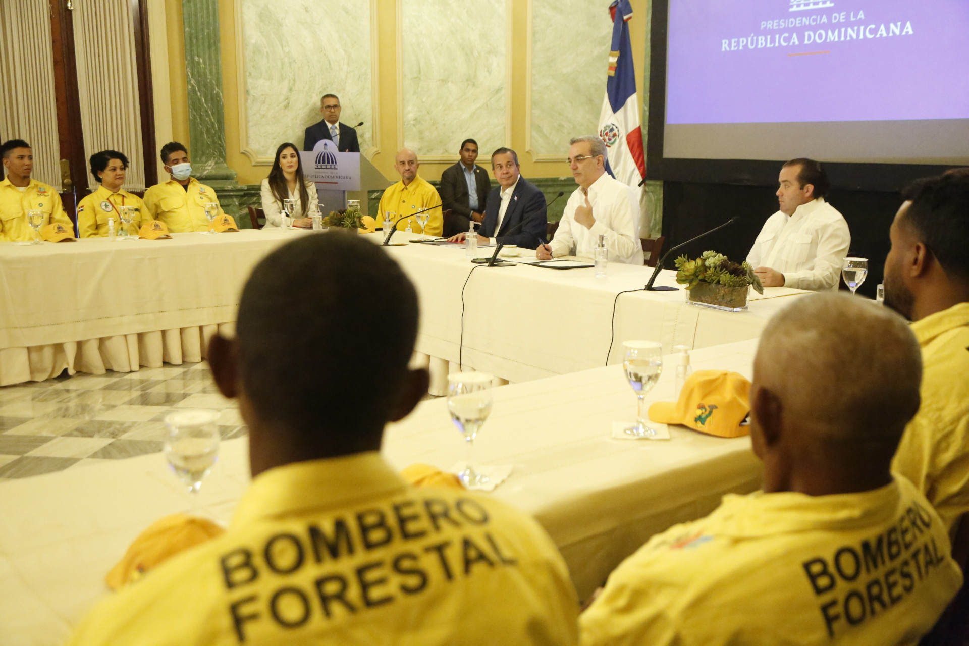 Presidente Luis Abinader recibe junto al Ministro de medio ambiente a Bomberos Forestales