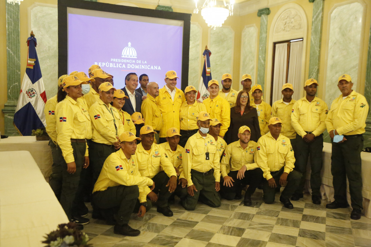 Presidente Luis Abinader recibe junto al Ministro de medio ambiente a Bomberos Forestales