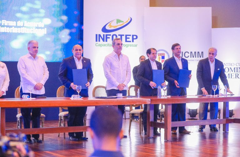 Presidente califica de proyecto educativo revolucionario acuerdo INFOTEP, PUCMM y Domínico Americano