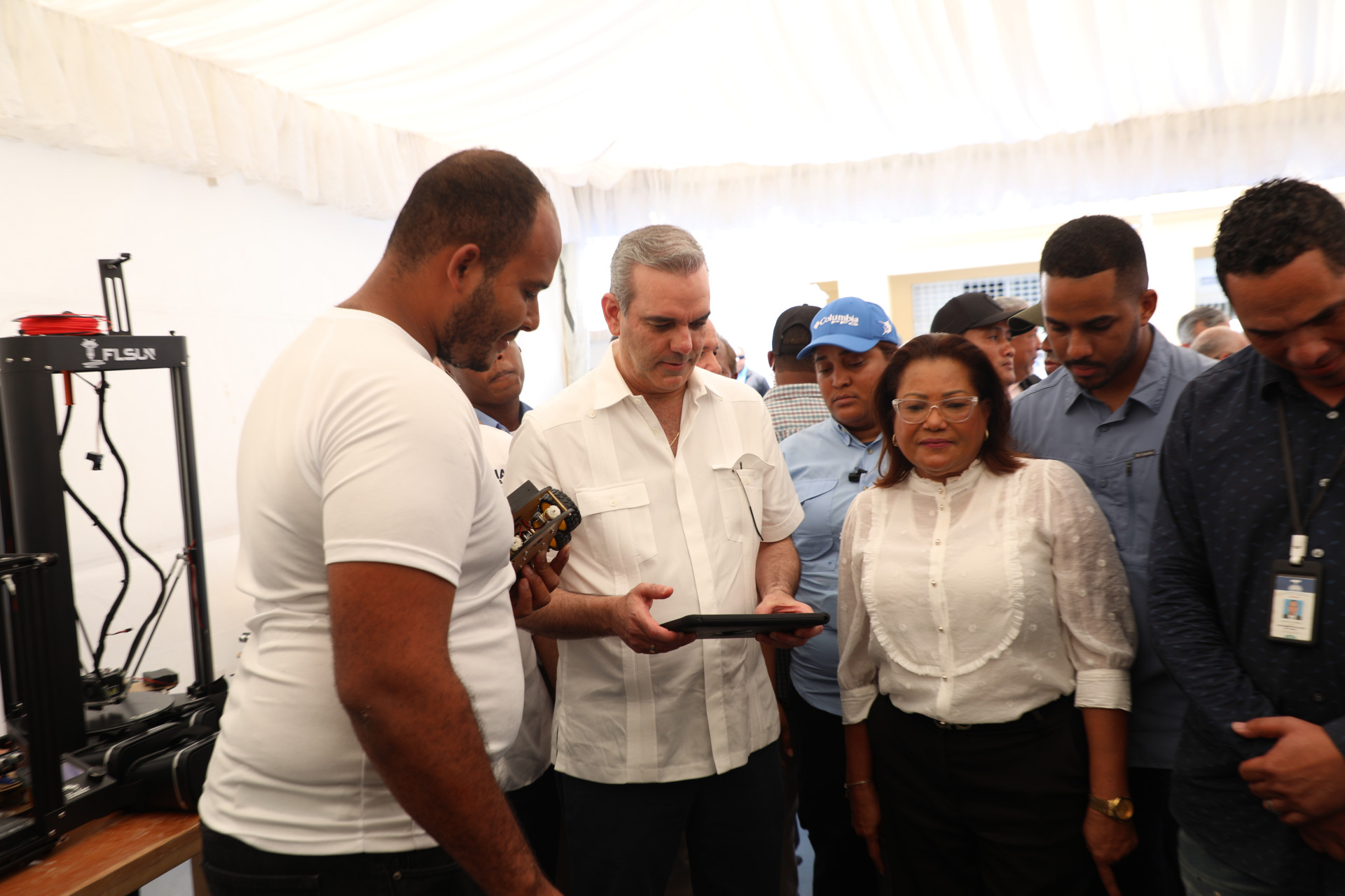 Santo Domingo.- El presidente Luis Abinader visitó la primera Feria de Ciencias y Tecnología de Santo Domingo Oeste, con el objetivo de fomentar habilidades científicas de estudiantes universitarios y de nivel medio.
