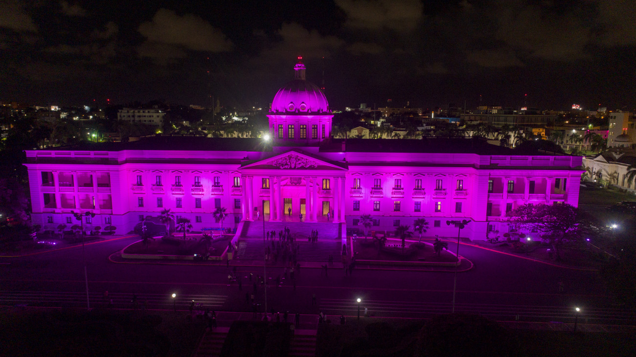 Con encendido de luces color rosa en el a Palacio Nacional, dan inicio al Mes de la Sensibilización Sobre el Cáncer de Mama.