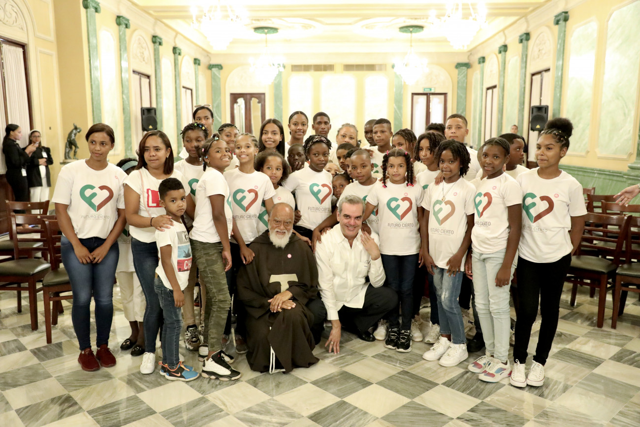 Presidente Abinader recibe visita de Fray Jose Maria Guerrero y los niños del campamento Fundacion Futuro Cierto