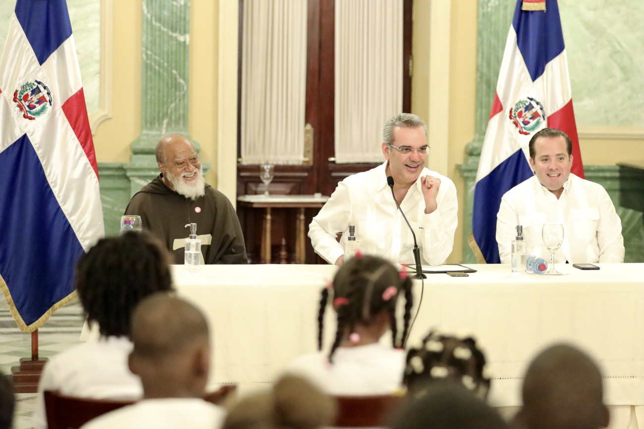 Presidente Abinader recibe visita de Fray Jose Maria Guerrero y los niños del campamento Fundacion Futuro Cierto