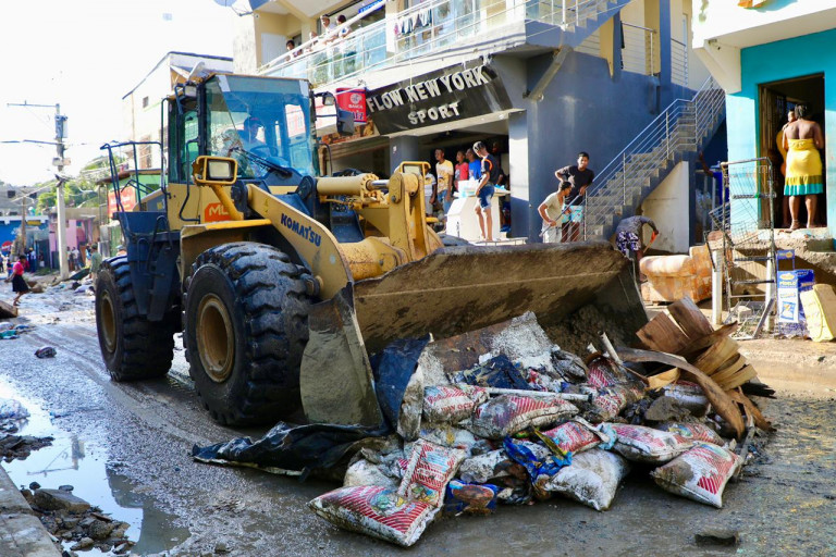 El presidente encabezó este sábado un recorrido en el barrio Las 800 del sector Los Ríos para supervisar los daños ocasionados por las fuertes lluvias de este viernes.