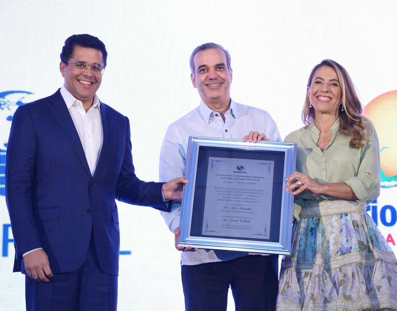 INVEROTEL reconoció este jueves la labor del gabinete de turismo dominicano en la recuperación del turismo y en los logros récord que ha tenido el sector en el año 2022, durante un evento celebrado en Santo Domingo al que asistieron el Presidente de la Abinader y el Ministro Collado.