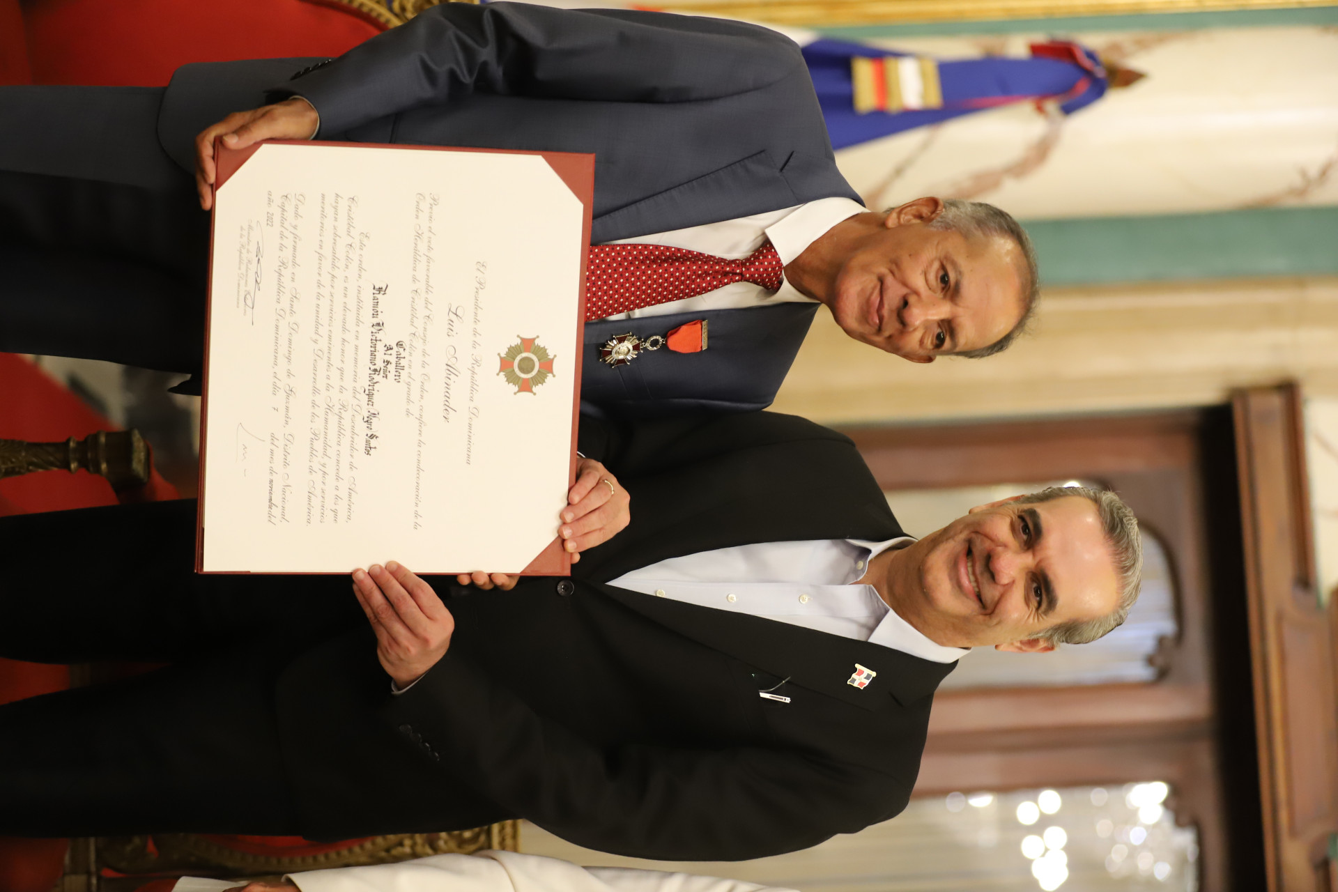 Presidente Abinader condecora a Negro Santos y Charytín Goico con la Orden Heráldica de Cristóbal Colón en el Grado de Caballero