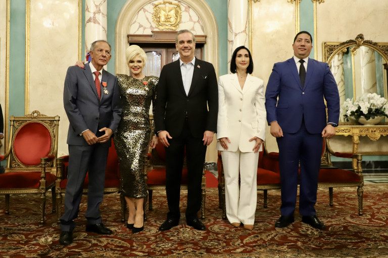 Presidente Abinader condecora a Negro Santos y Charytín Goico con la Orden Heráldica de Cristóbal Colón en el Grado de Caballero