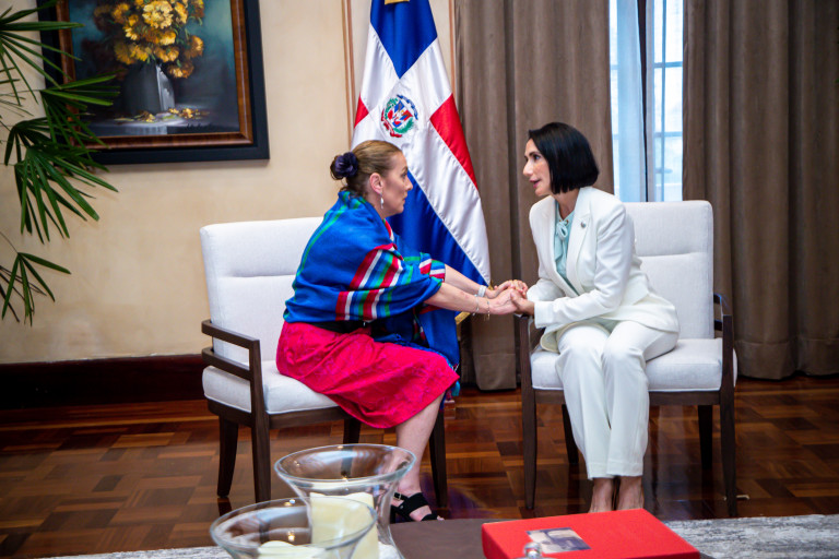 Presidente Abinader y primera dama reciben visita de cortesía de Beatriz Gutiérrez, esposa del presidente de México