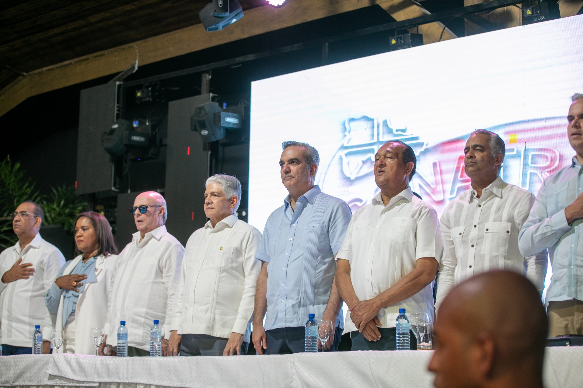 Acompañaron al presidente Abinader, el ministro de la Presidencia, Joel Santos, y el de Trabajo, Luis Miguel De Camps; el director del INDRHI, Olmedo Caba; la gobernadora , Adela Tejada; el alcalde de Bonao, Eberto Núñez; el director de Atención Primaria del SNS, José Luis López; la directora regional de Salud Cibao Central, Ayadelky Robles, junto con los diputados Orlando Martínez Peña y Norberto Ortiz de la Cruz.