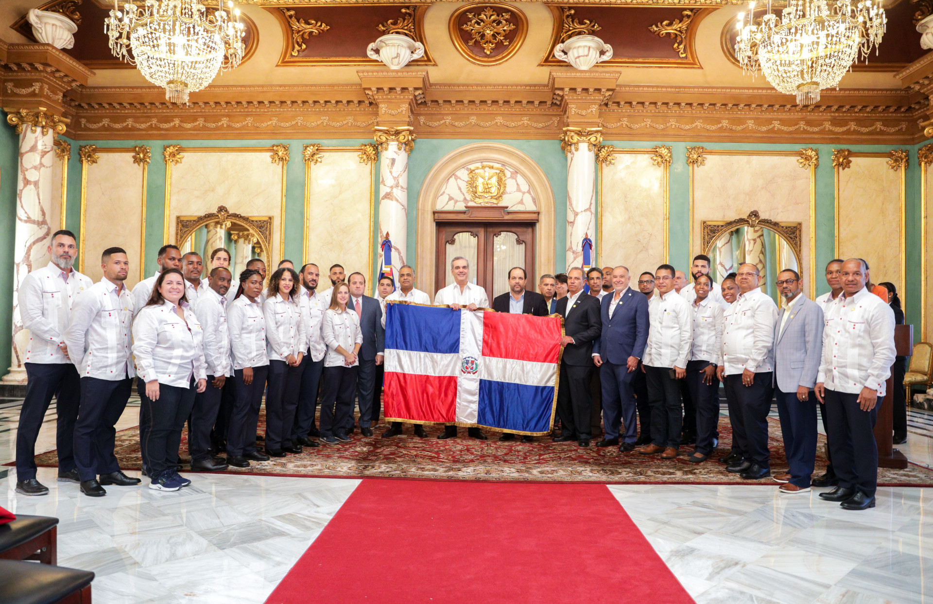 Presidente Abinader entrega bandera nacional a delegación que participará en los XXlV juegos Centroamericanos y del Caribe, San Salvador 2023