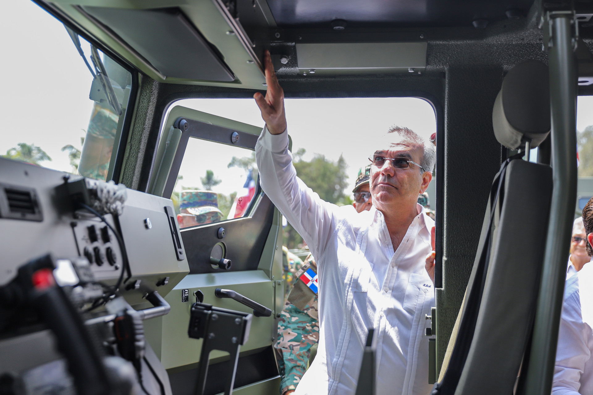 El presidente entrega 20 vehículos blindados de Alta Movilidad Táctico (VAMTAC), al ejército de la República Dominicana, que disponen de cámaras de alta definición en tiempo real y comunicación simultánea ante emergencias, los cuales fortalecerán este organismo militar, para proteger la integridad y soberanía de la nación.