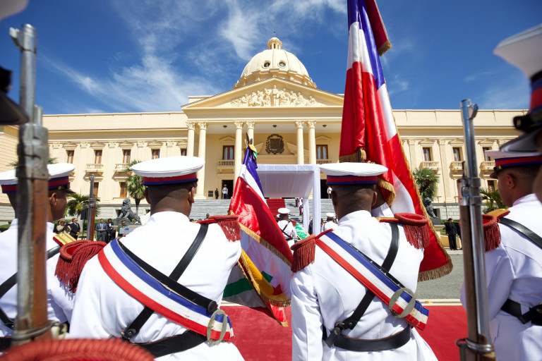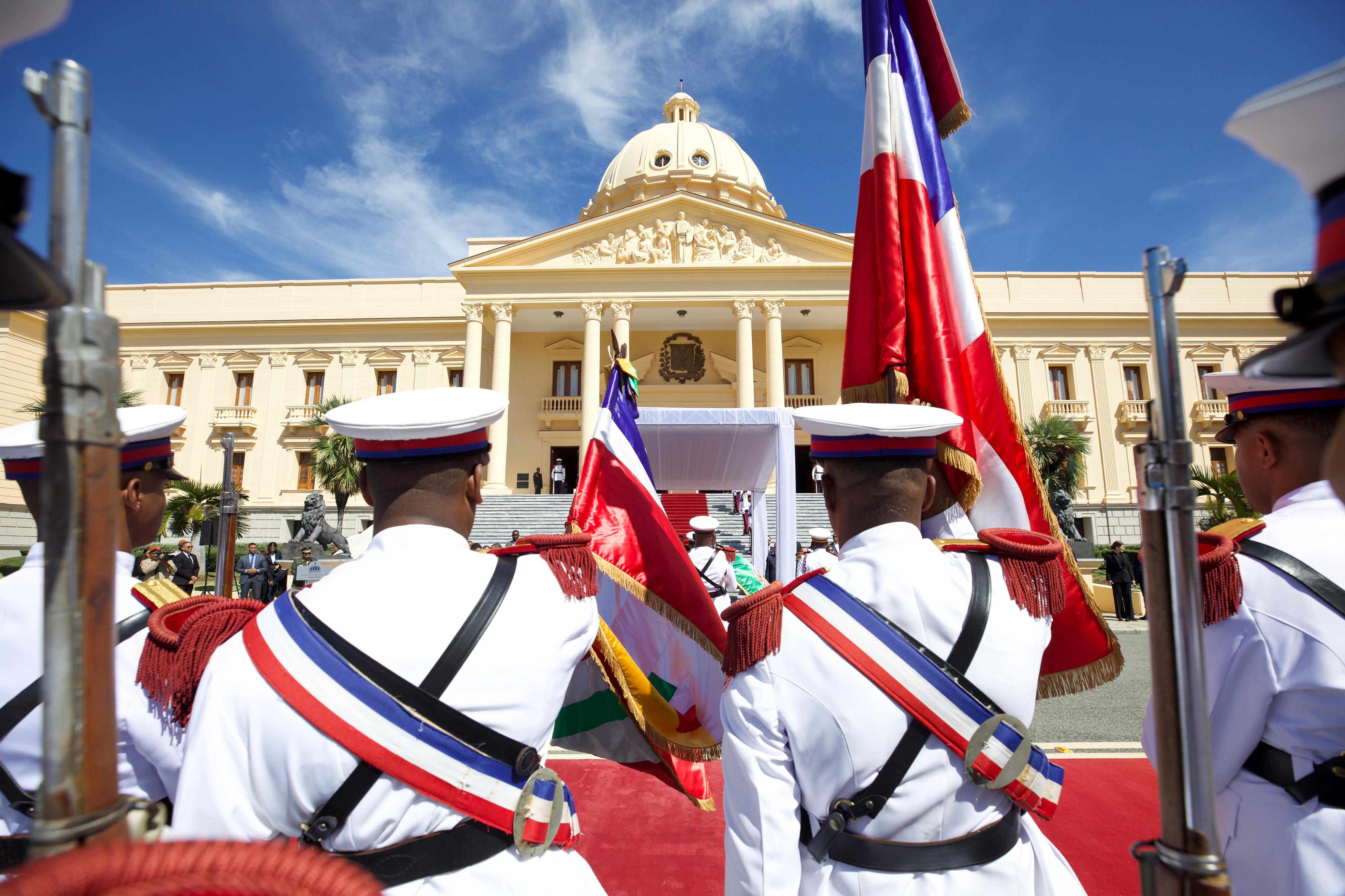La ceremonia de recibimiento al mandatario de la República de Surinam estuvo encabezada por el presidente Abinader y se realizó en la explanada frontal del Palacio Nacional, a las 10:00 de la mañana.