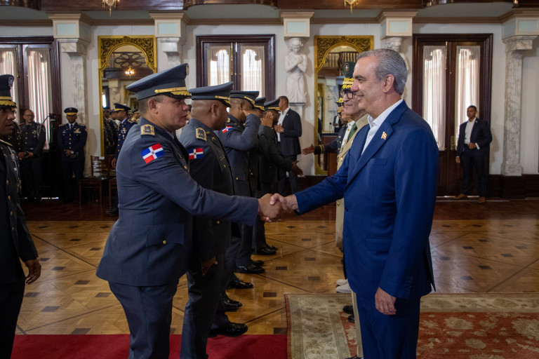 En un solemne acto, el Pdte. @LuisAbinader recibió el saludo de nueve promociones de oficiales de las Fuerzas Armadas y la Policía Nacional, a quienes manifestó su admiración, respeto y orgullo; asimismo, les reiteró su compromiso de seguir trabajando para mejorar sus condiciones laborales y de vida.