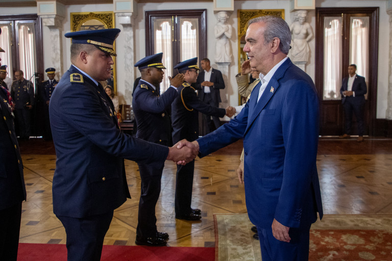 En un solemne acto, el Pdte. @LuisAbinader recibió el saludo de nueve promociones de oficiales de las Fuerzas Armadas y la Policía Nacional, a quienes manifestó su admiración, respeto y orgullo; asimismo, les reiteró su compromiso de seguir trabajando para mejorar sus condiciones laborales y de vida.