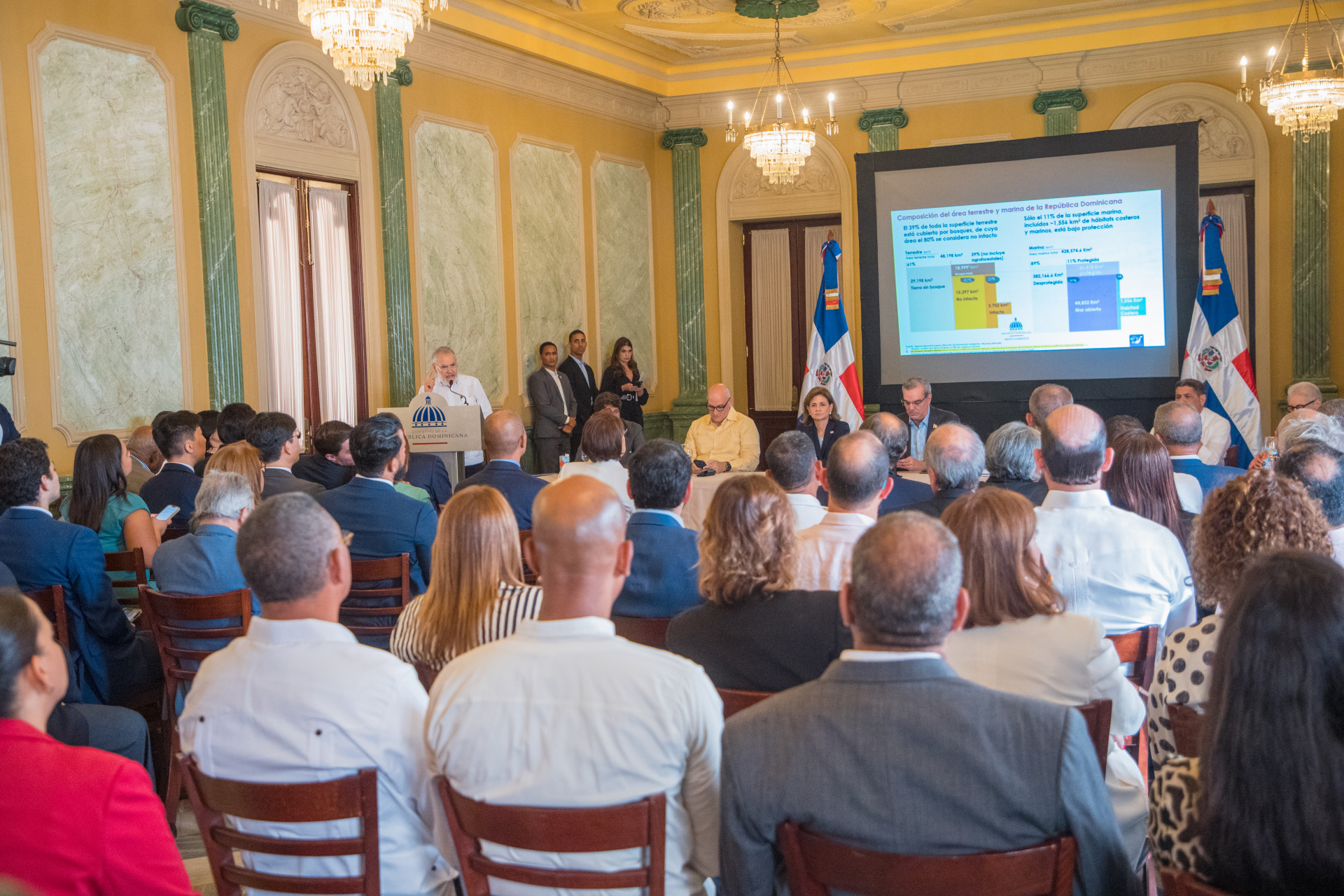 El presidente Luis Abinader junto con la Vpdta. Raquel Peña y el ministro de Ambiente, Ceara Hatton, presentó los avances de “República Dominicana 30x30”.