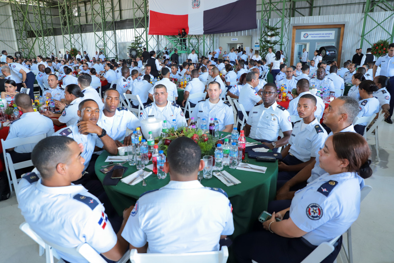 El Presidente Luis Abinader almuerza con miembros de la Fuerza Aérea en San Isidro