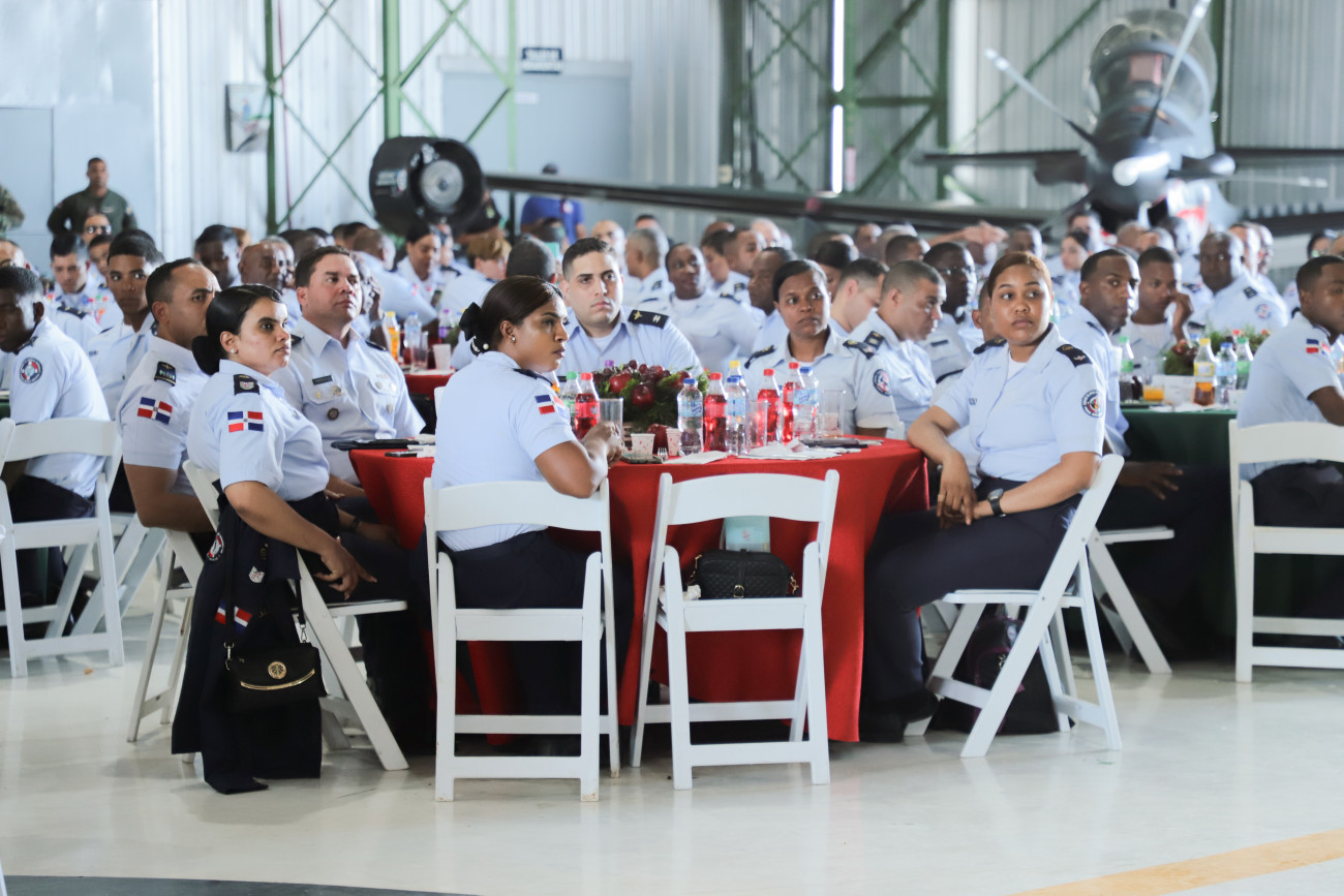 El Presidente Luis Abinader almuerza con miembros de la Fuerza Aérea en San Isidro