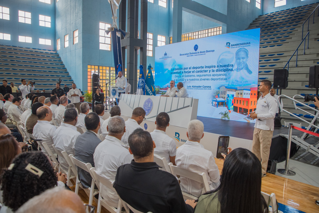 Inauguración del remozamiento del Polideportivo Tony Barreiro en la Universidad Autónoma de Santo Domingo (UASD), cuya inversión fue de 28 millones de pesos y beneficiará a unos 88,000 estudiantes.
