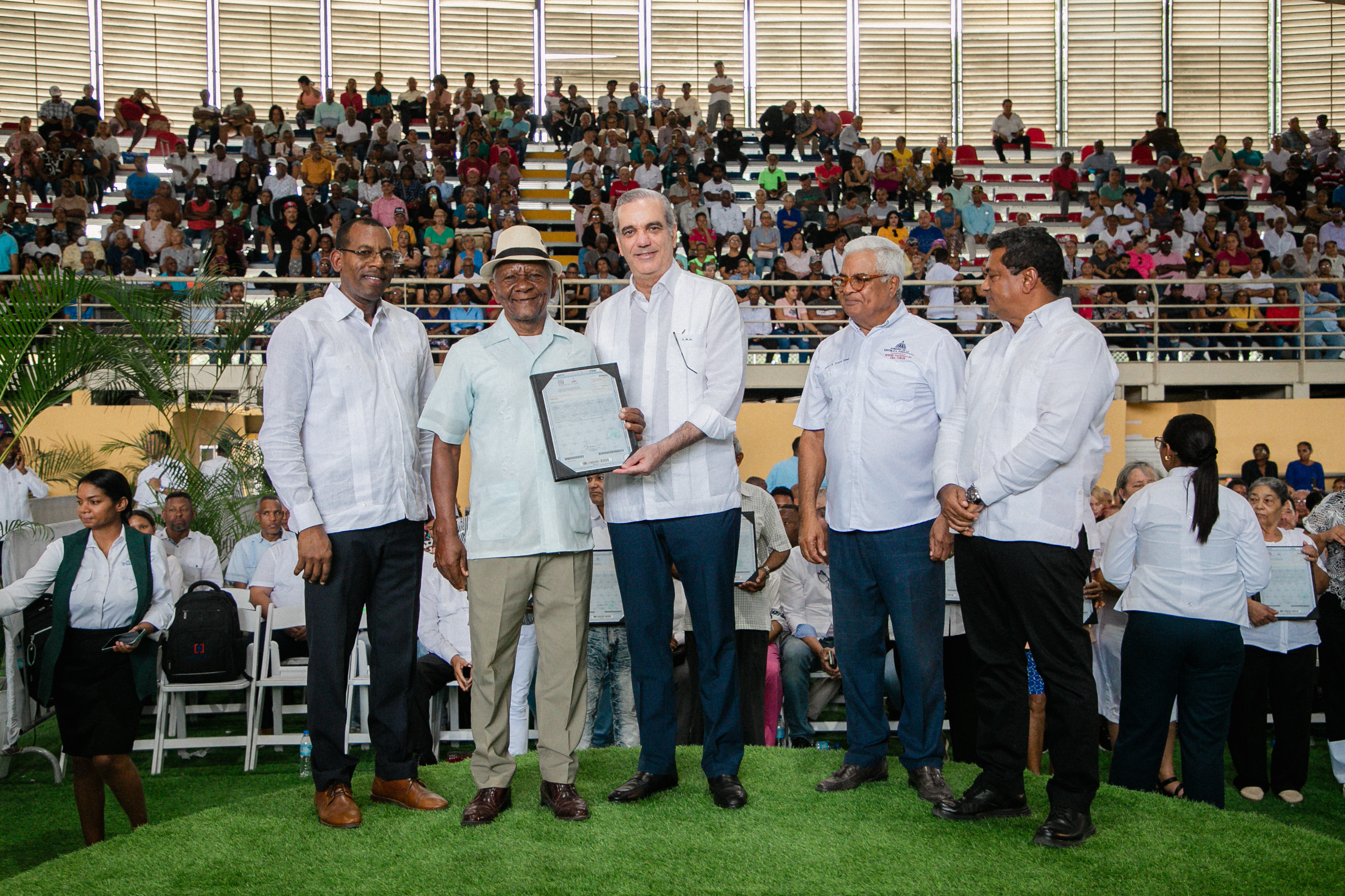 El presidente Abinader explicó que la entrega completa no pudo realizarse en un solo acto debido a casos en los que algunas familias deben ponerse de acuerdo sobre a nombre de quién debe ser emitido el certificado, o porque ciertos beneficiarios se encuentran fuera del país.
