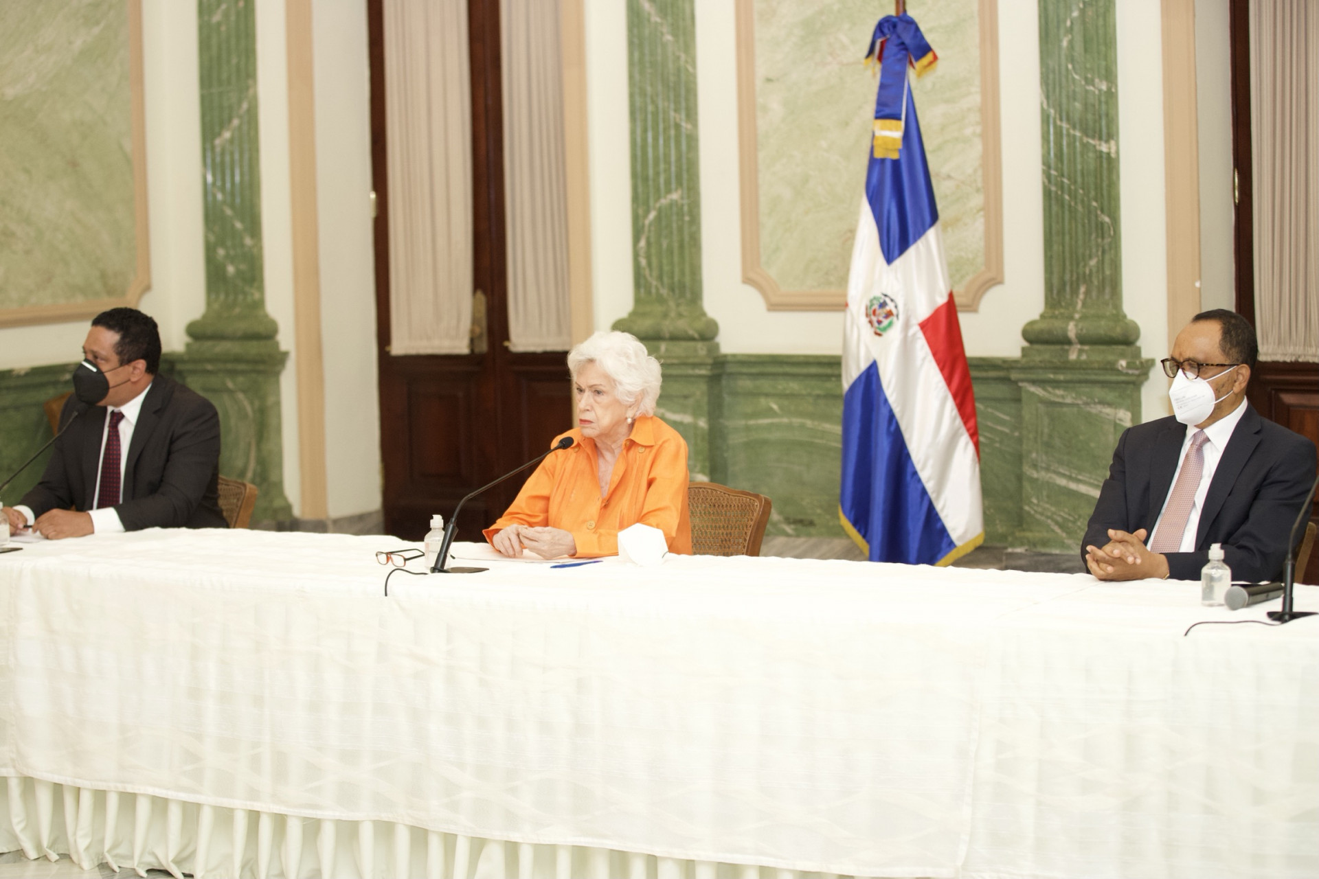 Rueda de prensa de la directora de Ética e Integridad Gubernamental, Milagros Ortíz Bosch y el director de Compras y Contrataciones Públicas, Carlos Pimentel.