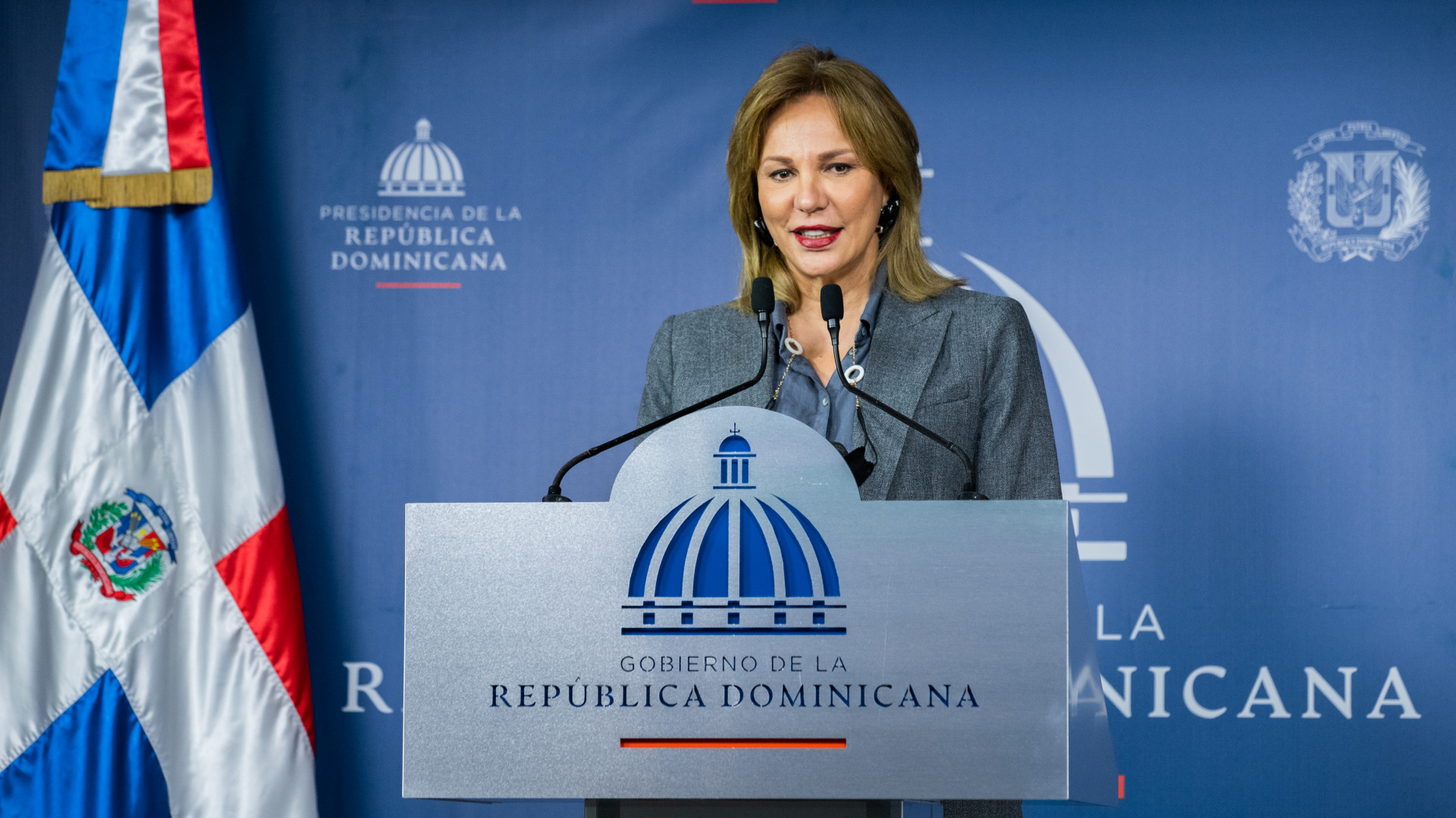 Milagros Germán, Vocera Oficial de la Presidencia, ofrece Declaraciones en Puertas Abiertas.