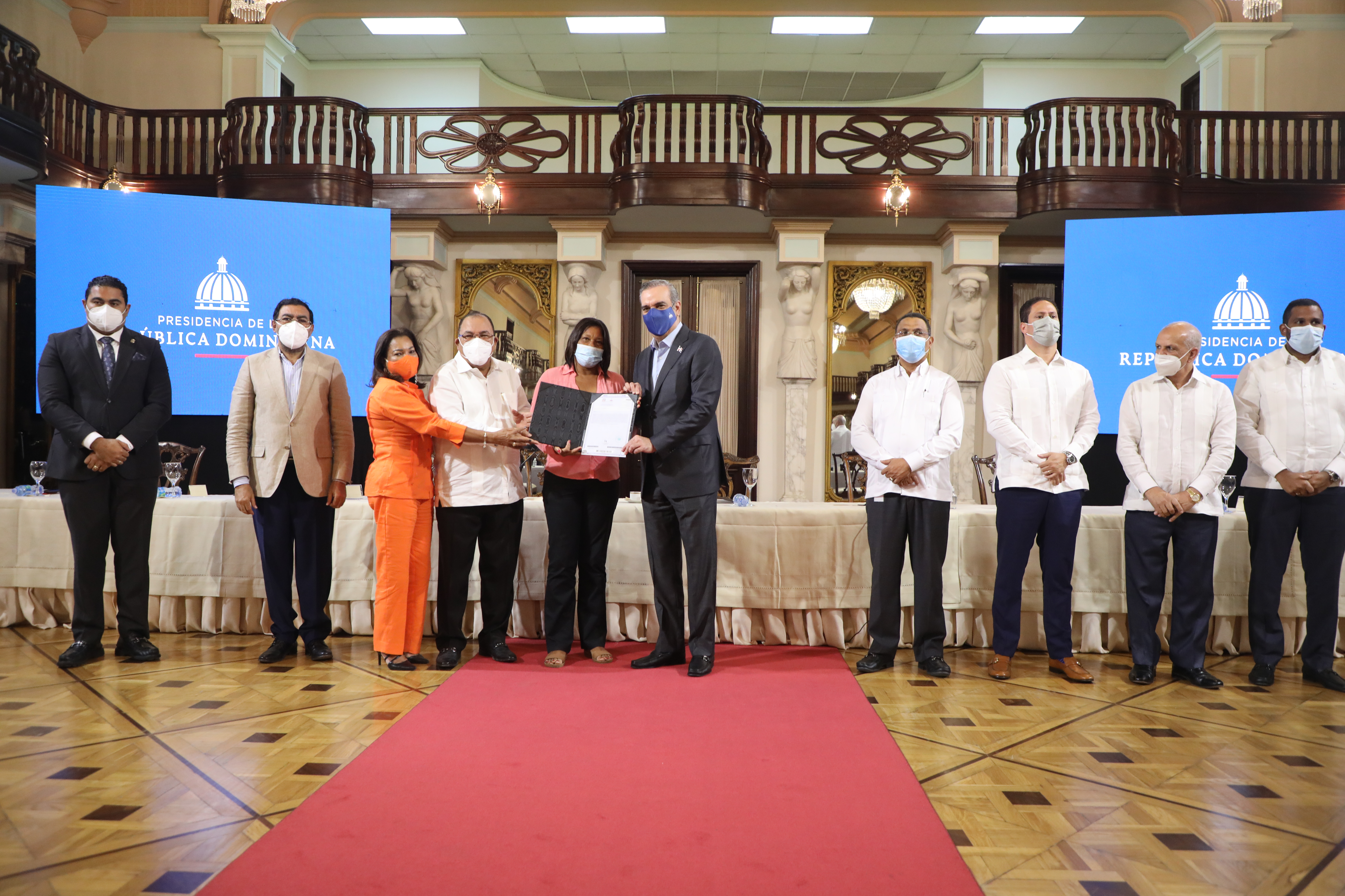 El Presidente Luis Abinader Entrega títulos definitivos del Plan Nacional de Titulación, en el Salon Las Cariatides del Palacio Nacional.