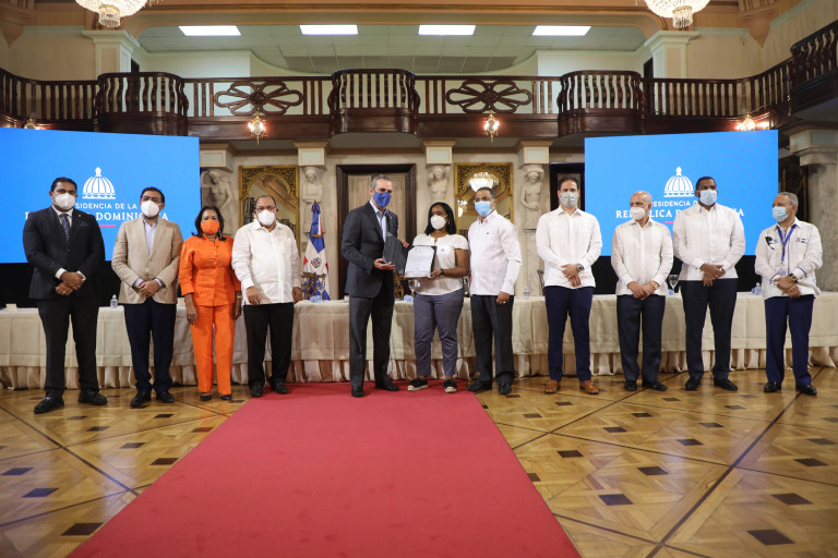 El Presidente Luis Abinader Entrega títulos definitivos del Plan Nacional de Titulación, en el Salon Las Cariatides del Palacio Nacional.