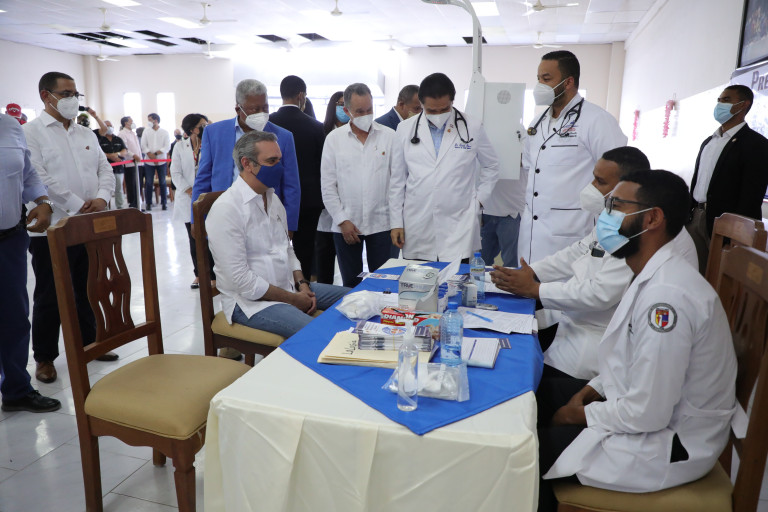 Luis Abinader visitó un centro de inoculación ubicado en Moca
