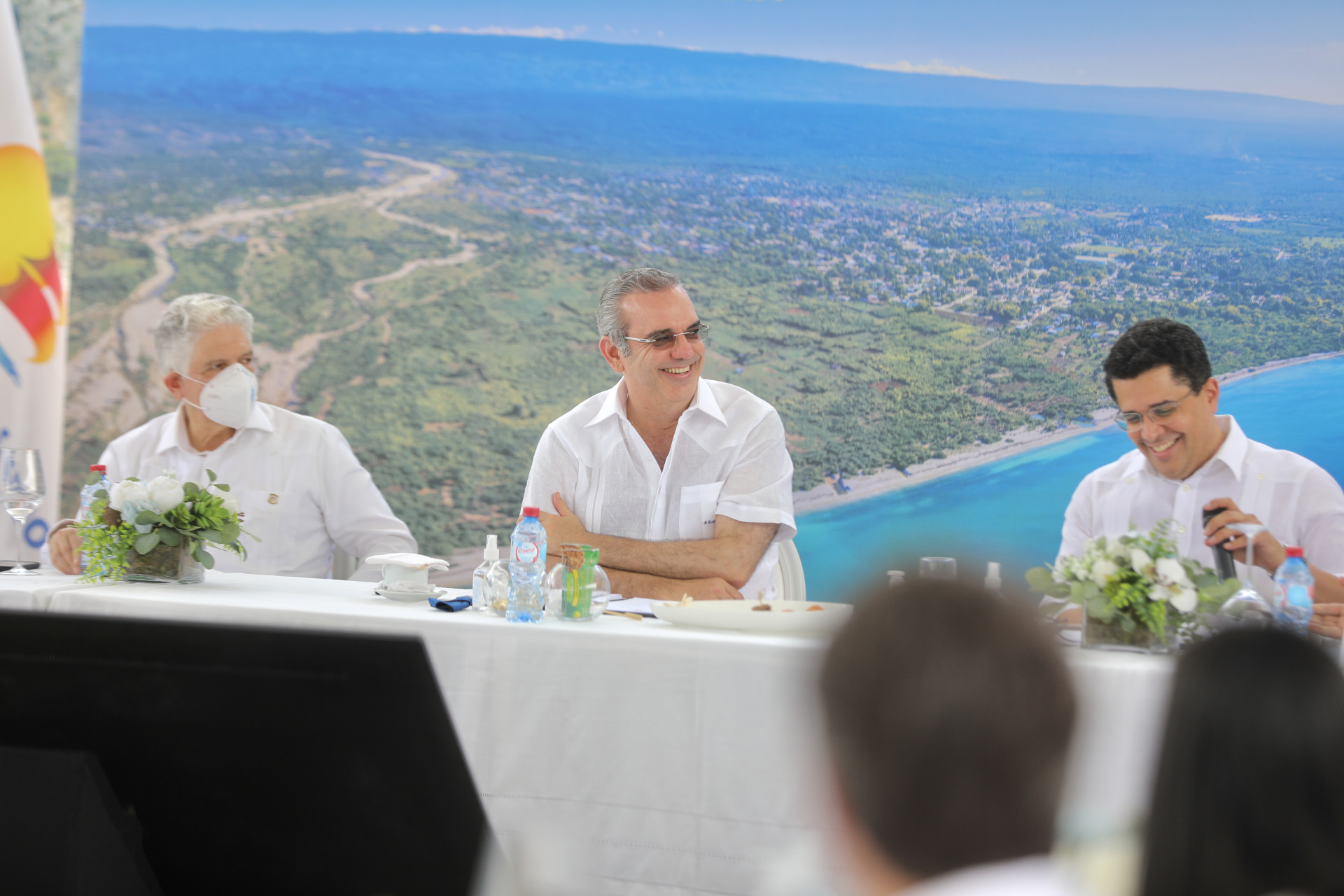 Junto al presidente se encontraban el presidente del Senado, Eduardo Estrella; el ministro de la Presidencia, Lisandro Macarrulla; el director de Alianzas Público-Privadas, Sigmund Freund; el alcalde del municipio de Pedernales, Andrés Jiménez y el Viceministro de Cooperación Internacional del ministerio de Turismo, Carlos Peguero.