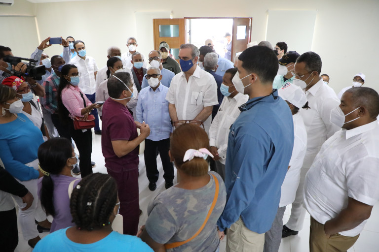 El mandatario quien se ha convertido en el principal promotor y motivador para que los dominicanos acudan a inocularse en todo el país, también se interesó por las situación del hospital y las condiciones en que desempeñan sus labores el personal médico y administrativo.