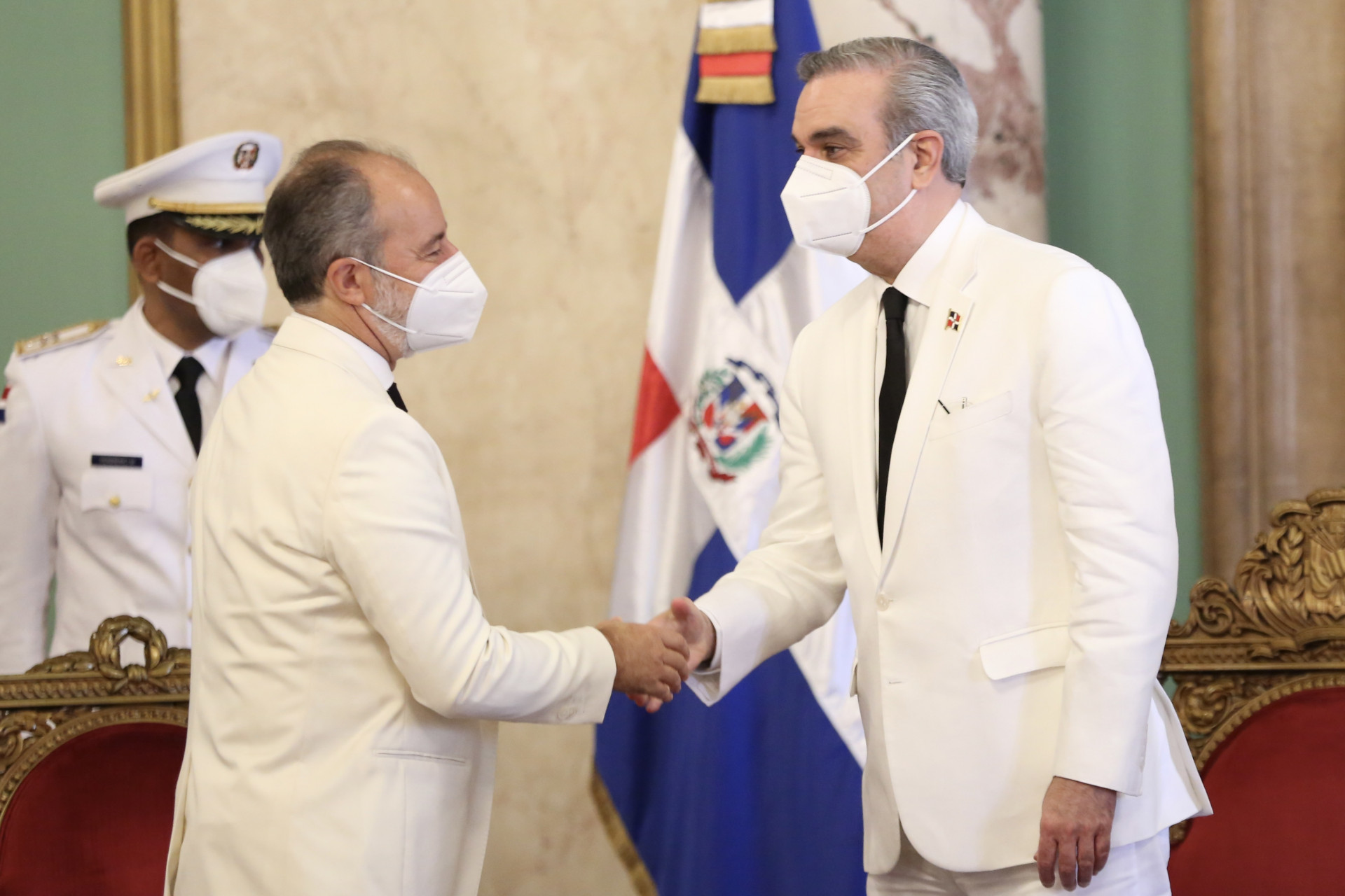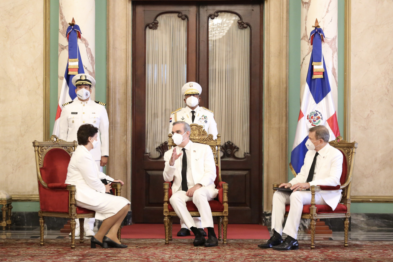 El Presidente Luis Abinader recibió, junto al canciller Roberto Álvarez , las cartas credenciales de seis nuevos embajadores, durante un acto realizado en el Palacio Nacional