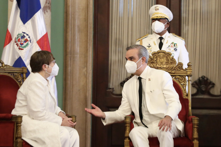 El Presidente Luis Abinader recibió, junto al canciller Roberto Álvarez , las cartas credenciales de seis nuevos embajadores, durante un acto realizado en el Palacio Nacional