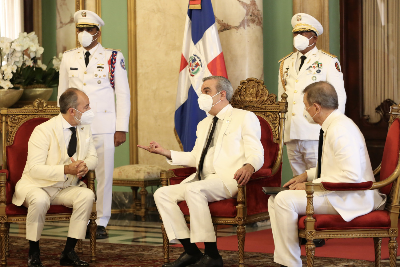 El Presidente Luis Abinader recibió, junto al canciller Roberto Álvarez , las cartas credenciales de seis nuevos embajadores, durante un acto realizado en el Palacio Nacional