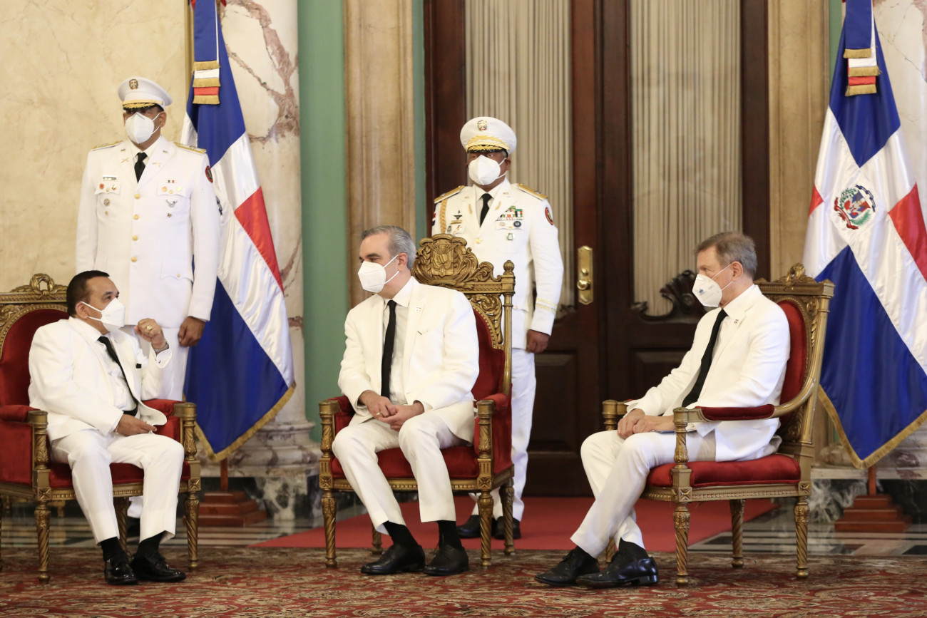 El Presidente Luis Abinader recibió, junto al canciller Roberto Álvarez , las cartas credenciales de seis nuevos embajadores, durante un acto realizado en el Palacio Nacional