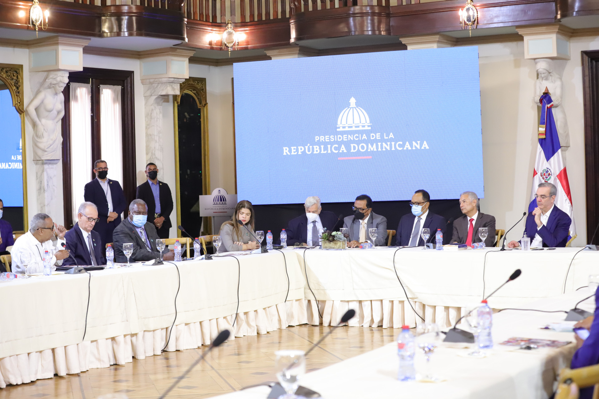 Esta tarde, el Presidente Luis Abinader encabezó un encuentro con escritores dominicanos, en el Salón Las Cariátides del Palacio Nacional; con quienes compartió ideas que permitirán fomentar la lectura y la cultura en todo el país.
