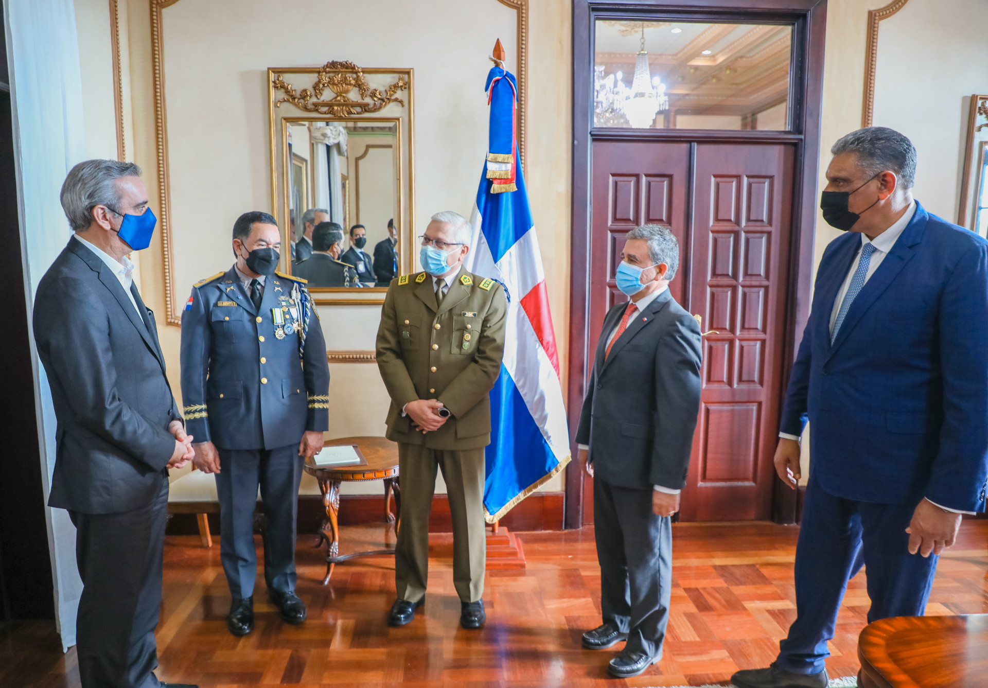 Una delegación de los Carabineros de Chile, se reunió en la mañana de este miércoles con el presidente Luis Abinader y el ministro de Interior y Policía, Jesús Vásquez Martínez, con quienes abordarán aspectos relacionados con la transformación y profesionalización de la Policía Nacional.