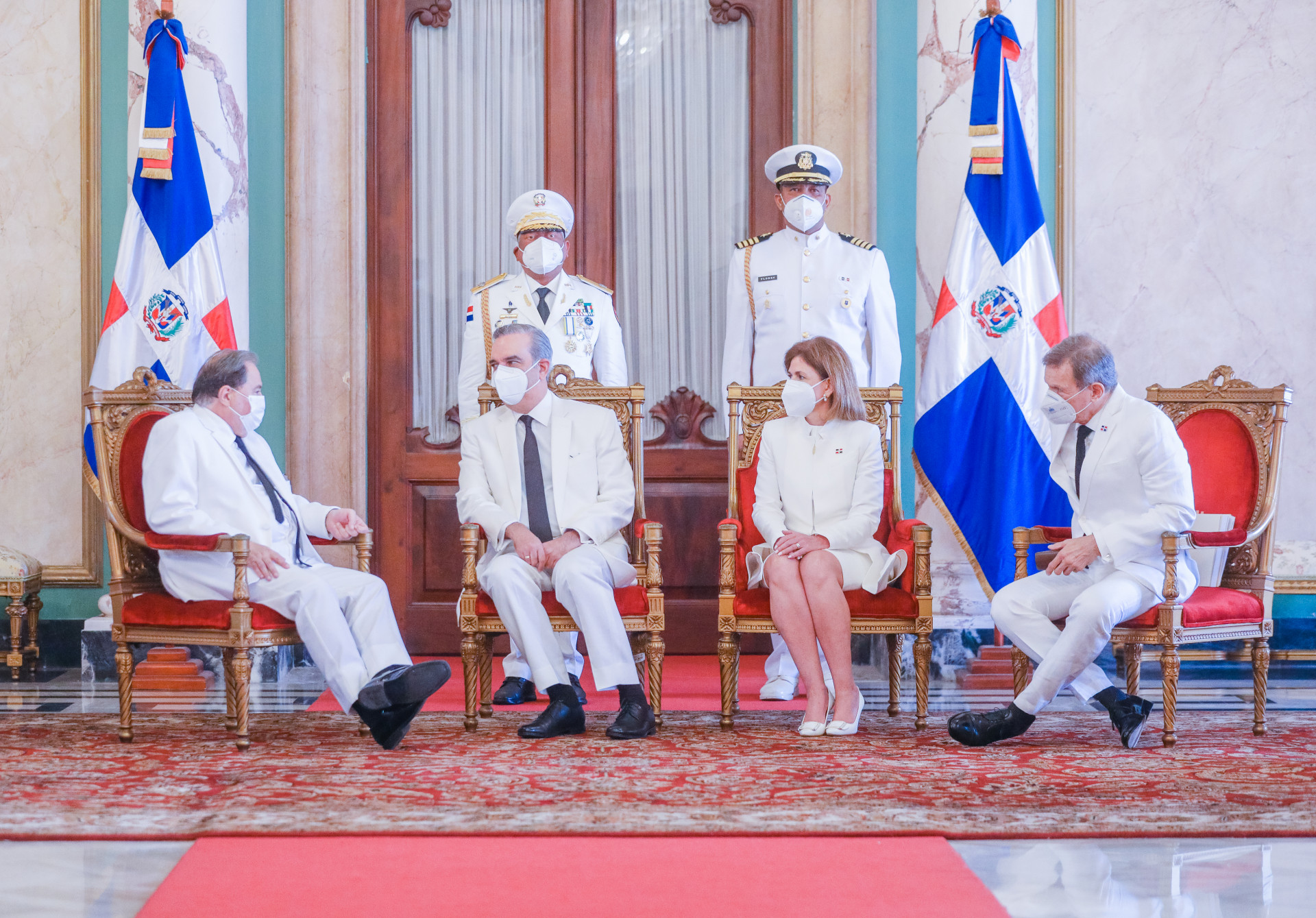Durante el acto realizado en el Salón de Embajadores del Palacio Nacional, el Presidente estuvo acompañado por el Ministro de Relaciones Exteriores, Roberto Álvarez y la Vicepresidenta Raquel Peña.