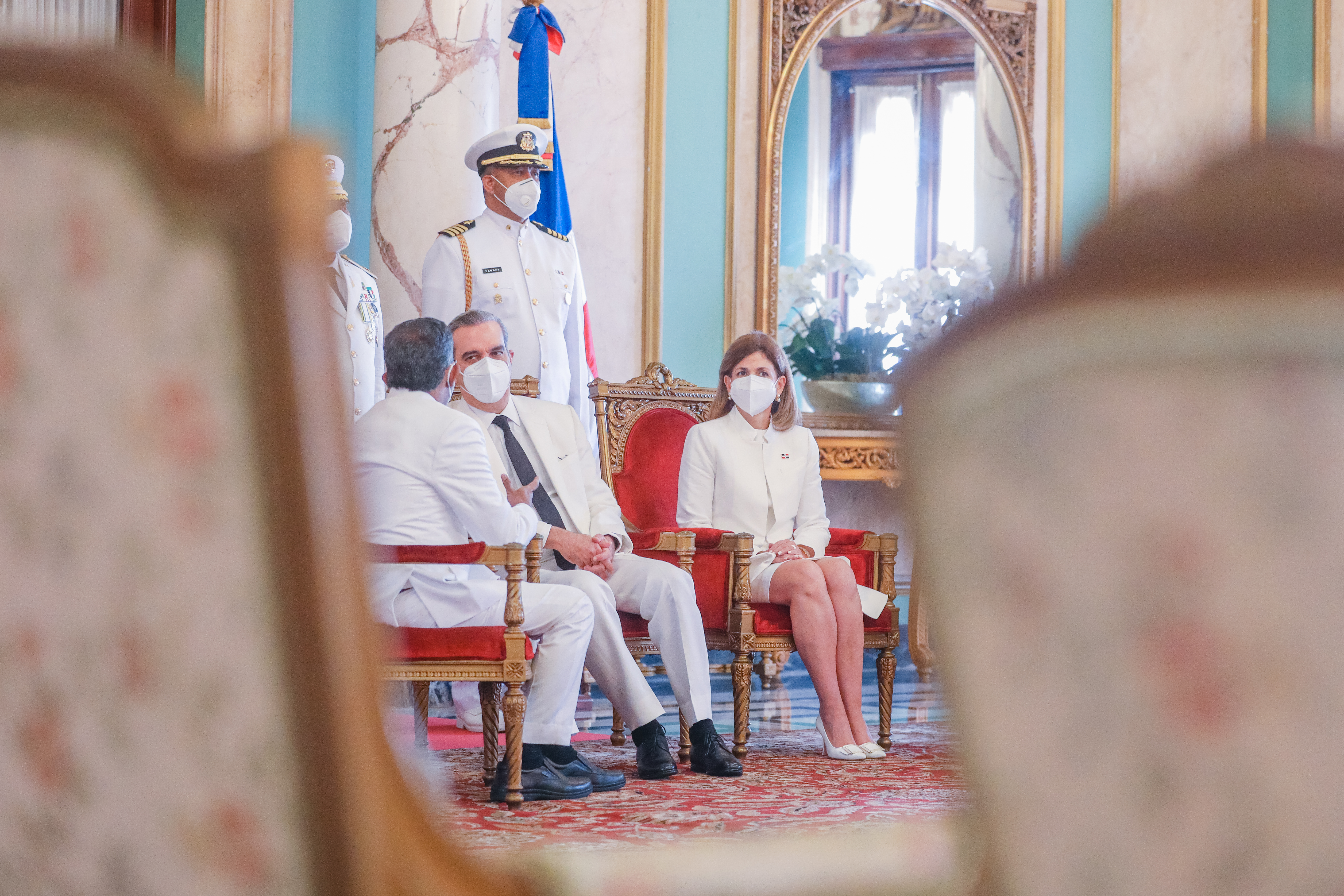 Durante el acto realizado en el Salón de Embajadores del Palacio Nacional, el Presidente estuvo acompañado por el Ministro de Relaciones Exteriores, Roberto Álvarez y la Vicepresidenta Raquel Peña.